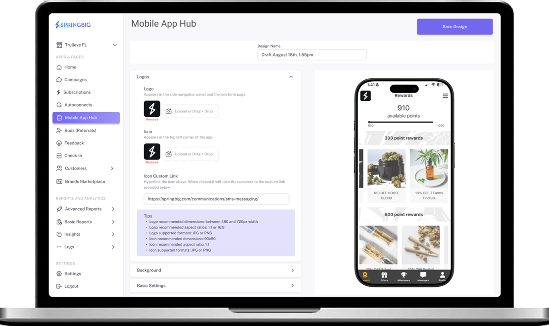 Break through carrier restrictions with push notifications that let you say what you want—no gated links, no filtration, just direct engagement with your customers. Our fully branded native app not only ensures your messages land every time but also includes a powerful customization hub, giving you full control over the look, feel, and features of your app without the need for developers. With Springbig, you get a direct channel to your customers and a flexible platform built entirely around your brand.