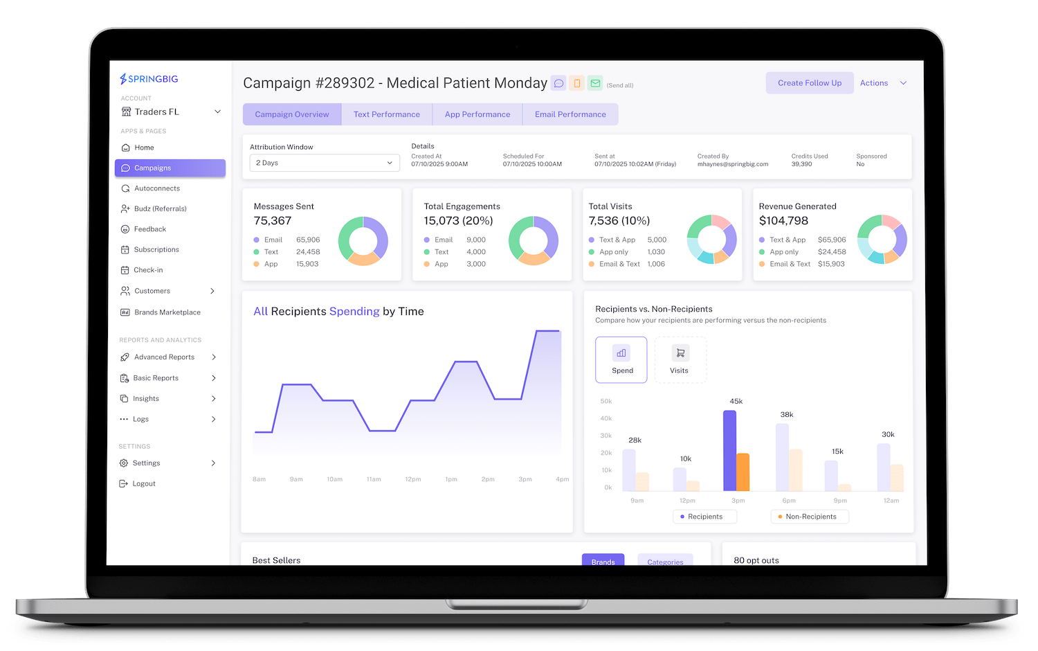 Use Springbig's built-in analytics and reporting suite to align your SMS campaigns with your audience's preferences to increase click rates and conversion over generic email templates. Impersonal text blasts are a thing of the past.
