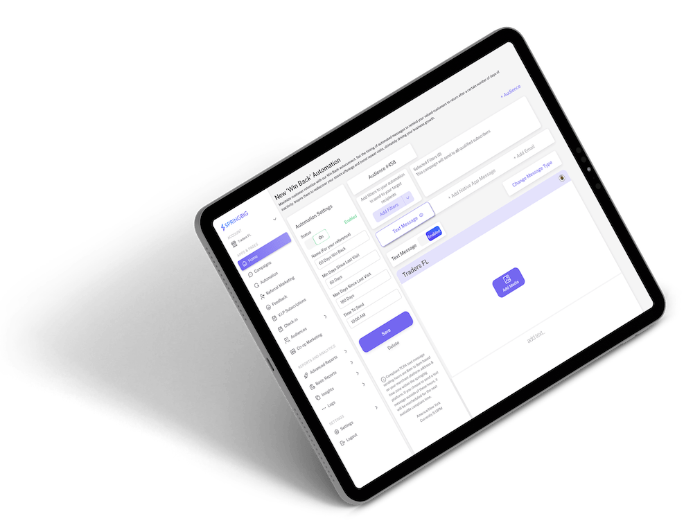 Bulk text messaging is a thing of the past. Springbig’s software automatically groups customers into segments based on their real-time data analysis of consumer preferences, buying patterns, visit habits, and more. Use our filters and Audience Builder to segment your lists and create personalized messages and targeted promotions.